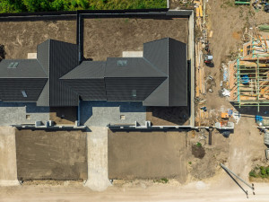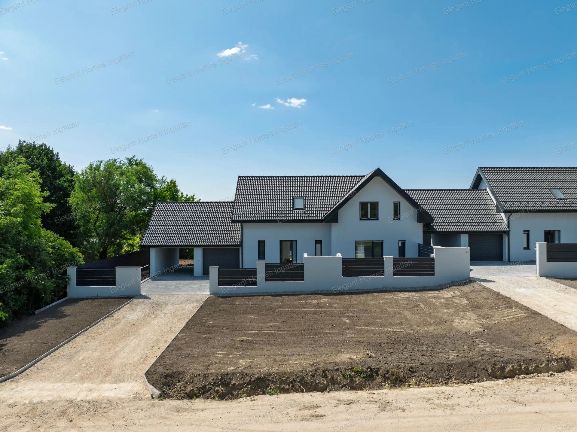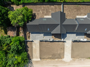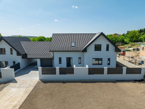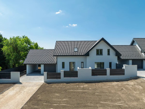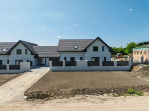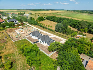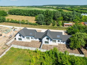Budapesttől 30 km távolságra, Szent László-patak mellett elterülő Gyúró község kertvárosias részén, 1198 nm alapterületű telken valósul meg ez a kétlakásos lakóépület figyelemre méltó referenciákkal rendelkező, rendkívül megbízható beruházótól.